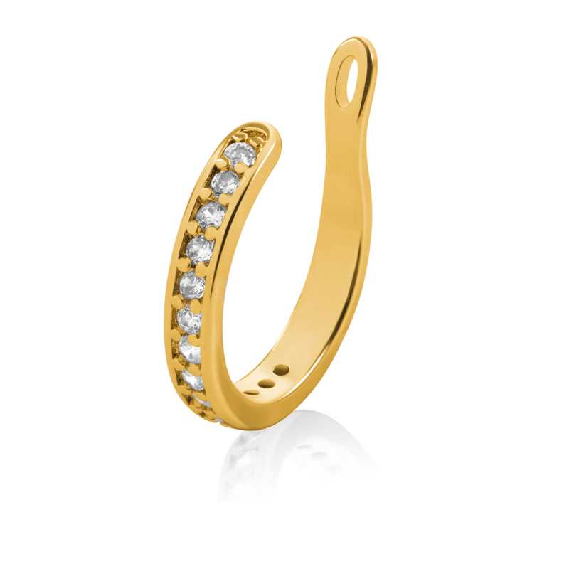 Tato elegantní single záušnice od značky Troli spojuje kvalitu s moderním designem. Vyrobena je z kvalitní oceli, která zaručuje dlouhou životnost a odolnost. Zlatý PVD povlak dodává šperku luxusní vzhled a chrání ho před poškrábáním. Ozdobena třpytivými čirými krystaly, které umocňují její půvab, se snadno nosí, jelikož není potřeba propíchnutí ušního lalůčku. Pro optimální péči doporučujeme uchovávat šperk v originálním balení a vyhnout se kontaktu s vodou a agresivními chemikáliemi. Díky pečlivému zpracování a kvalitním materiálům je tento šperk ideálním doplňkem pro každou příležitost.