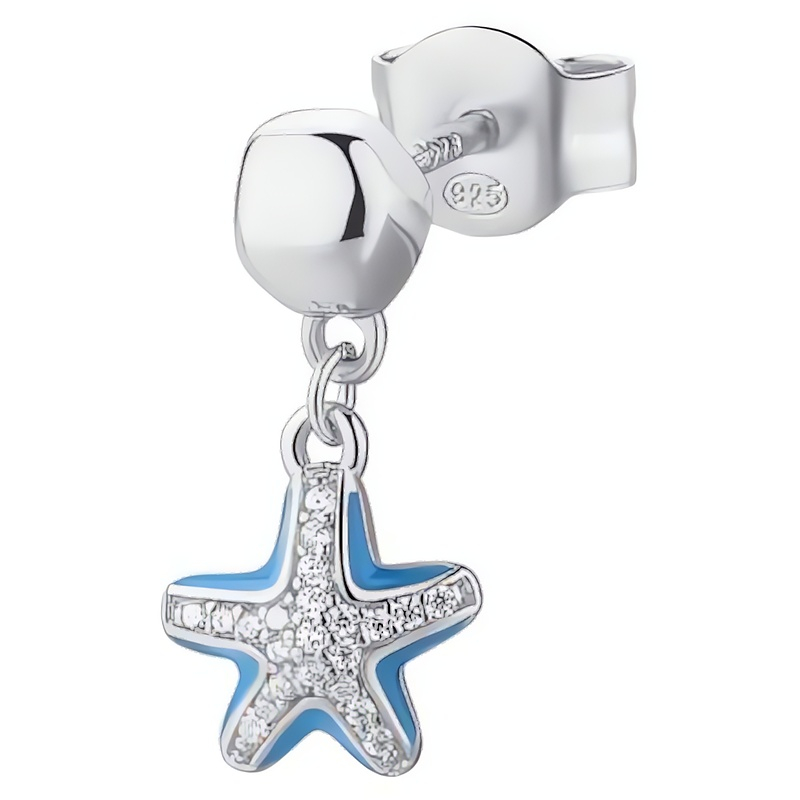 Půvabná stříbrná single náušnice Into The Blue od italské značky Rosato představuje dokonalou kombinaci elegance a originality. Vyrobena z kvalitního stříbra, tato náušnice se pyšní jemnou pecičkou, na níž se nachází půvabný přívěsek ve tvaru mořské hvězdice. Hvězda je zdobena čirými kubickými zirkony a modrým smaltem, což dodává šperku nádech mořské atmosféry. Tento jedinečný módní doplněk je skvělou volbou pro ženy, které chtějí vyjádřit svůj styl. Vytvořte si vlastní kombinaci a doplňte náušnici o další kousek z nabídky. Šperk je dodáván v originálním balení a má délku 1, 7 cm.