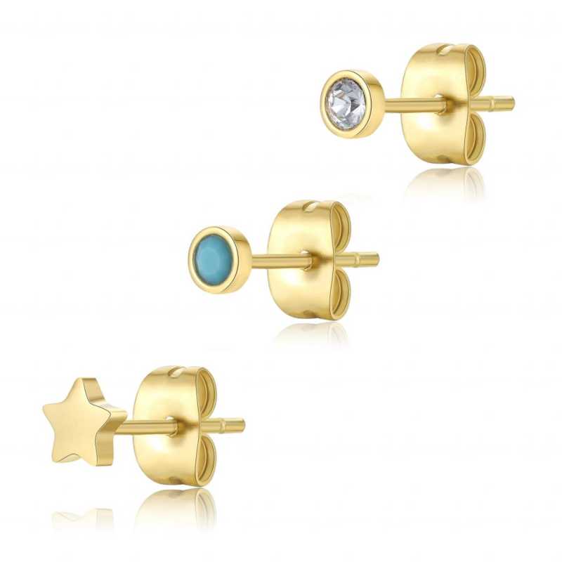 Elegance a moderní design se snoubí v sadě tří pozlacených asymetrických náušnic Glam CLICK značky S'AGAPÕ. Vyrobeny z vysoce kvalitní oceli 316L a pozlacené žlutým zlatem, tyto náušnice přinášejí luxusní nádech do každého outfitu. Každý kousek se vyznačuje unikátním tvarem – hvězdou a dvěma náušnicemi s třpytivými krystaly v tyrkysové a čiré barvě, které osvěží váš vzhled. Bezpečnostní zapínání na puzetku zaručuje pohodlné nošení bez obav z ztráty. Dodejte svému stylu šmrnc s šperky, které vás učiní neodolatelnou v každé situaci. Dodávají se v originálním balení, ideální jako dárek.