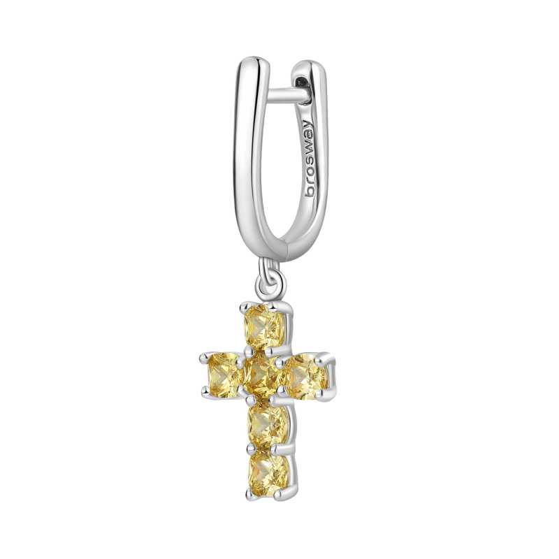 Přidejte do svého šperkového arzenálu elegantní stříbrnou single náušnici Křížek Fancy Energy Yellow od značky Brosway. Tento šperk, vyrobený z kvalitního stříbra s rhodiovaným povrchem, vyniká nejen svojí odolností proti alergiím, ale i neotřelým designem. Délka náušnice činí 2, 8 cm a bezpečnostní patentové zapínání zajišťuje pohodlné nošení po celý den. Třpytivý křížek ze žlutých kubických zirkonů dodává náušnici jedinečný šmrnc, který osvěží každý outfit. Kombinujte ji s dalšími náušnicemi dle vlastního vkusu a vytvořte tak unikátní styl. Šperk je dodáván v originálním balení, ideální jako dárek.