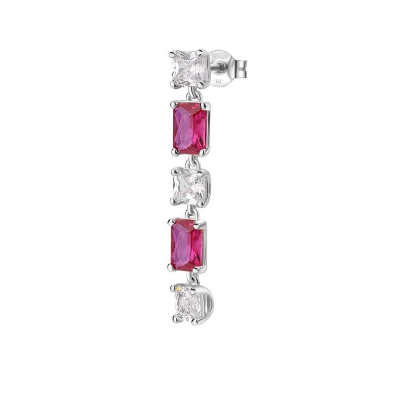 Stříbrná visací single náušnice Fancy Passion Ruby od značky Brosway je dokonalým spojením elegance a kvality. Vyrobena z ryzího stříbra 925/1000 a opatřena rhodiovaným povrchem, zajišťuje trvalý lesk a ochranu proti alergickým reakcím. Osazení kubickými zirkony v červené a čiré barvě dodává šperku jedinečný šarm. Pro zachování krásy doporučujeme šperk uchovávat v originálním balení a vyhnout se kontaktu s vodou a chemikáliemi. Tento italský výrobek, navržený s precizností, přináší do vašeho šperkovnice nádech luxusu a stylu.