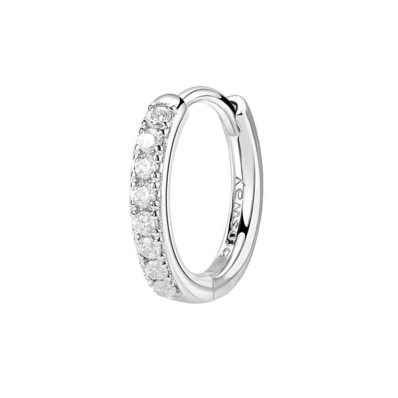 Kruhová single náušnice Fancy Infinite White od značky Brosway je ideálním doplňkem pro každou ženu, která hledá elegantní a nadčasový šperk. Vyrobená z kvalitního stříbra a opatřená rhodiovaným povrchem, tato náušnice zajišťuje lesk a chrání před alergickými reakcemi. Její design je ozdoben čirými kubickými zirkony, které dodávají oslnivý efekt. Průměr náušnice činí 1, 4 cm, což ji činí příjemnou na nošení díky bezpečnostnímu zapínání. Můžete ji kombinovat s dalšími náušnicemi dle vlastního vkusu, a tak vytvořit jedinečný styl. Tento šperk je dodáván v originálním balení, ideální jako dar.
