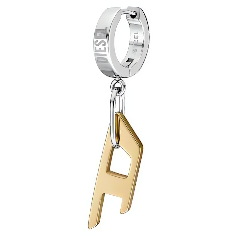 Stylová single náušnice s logem značky Diesel představuje spojení moderního designu a kvalitního materiálu. Vyrobena z nerezové oceli, tato unisex náušnice se pyšní elegantním kruhovým tvarem a přívěskem ve formě ikonického písmene D, ošetřeným zlatým PVD povlakem. Tento detail dodává šperku luxusní vzhled a činí z něj ideální doplněk pro každou příležitost. Bezpečné zapínání na kloub zajišťuje pohodlné nošení po celý den. Náušnice je dodávána v originálním balení, které podtrhuje její hodnotu. Vynikněte s tímto jedinečným šperkem, který osvěží váš styl.