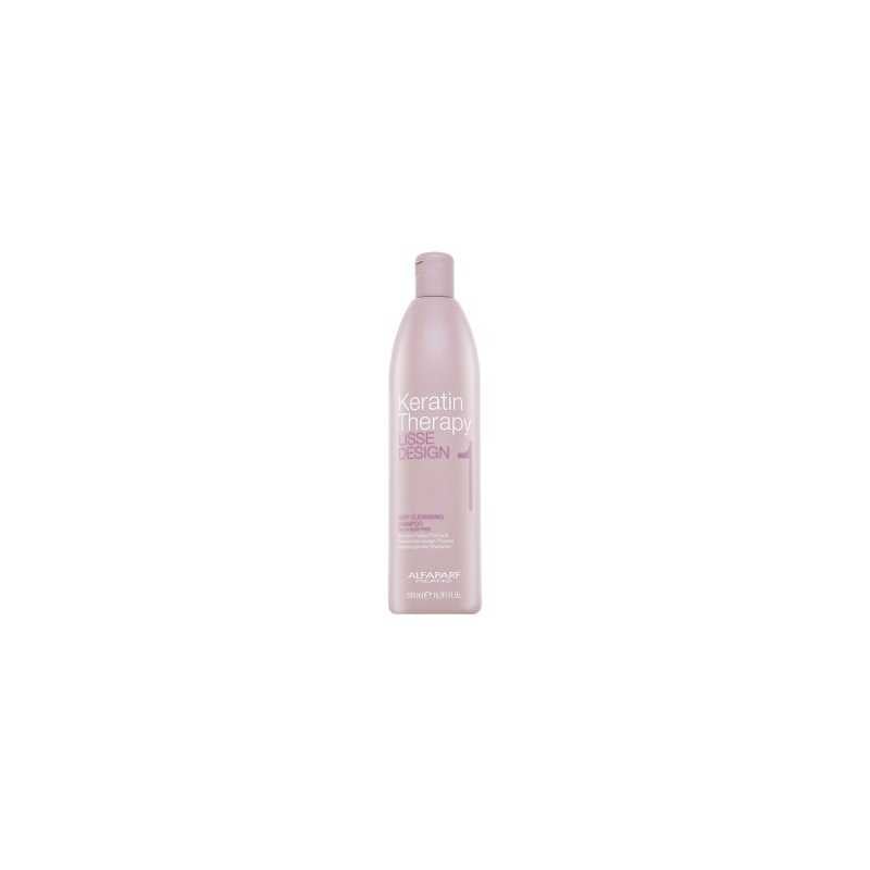 Alfaparf Milano Lisse Design Keratin Therapy Deep Cleansing Shampoo je šampon určený pro všechny typy vlasů, který poskytuje hloubkové čištění a přípravu na keratinovou terapii. Jeho jemné složení efektivně odstraňuje nečistoty a zbytky stylingových produktů, čímž zajišťuje maximální účinnost následné péče. Obsahuje keratin, který posiluje a obnovuje strukturu vlasů, a bambusový extrakt, jenž dodává pružnost a lesk. Kyselina glykolová pomáhá s odstraněním nežádoucích zbytků. Tento šampon je ideální volbou pro ženy, které chtějí, aby jejich vlasy vypadaly zdravě a zářivě, a to i před důležitými událostmi. Pro dosažení nejlepších výsledků doporučujeme kombinaci s dalšími produkty z řady Lisse Design Keratin Therapy.