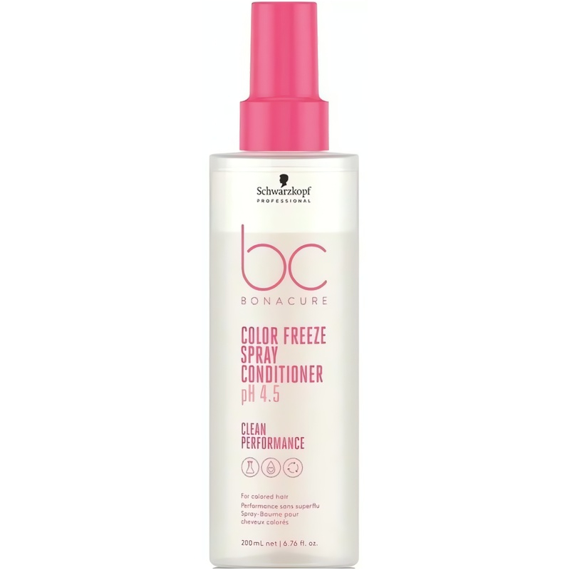 Bezoplachový kondicionér ve spreji Color Freeze od značky Schwarzkopf Professional je ideálním řešením pro barvené vlasy, které potřebují zvláštní péči. Tento lehký kondicionér okamžitě zlepšuje ovladatelnost a posiluje strukturu vlasů, čímž přispívá k jejich zdravému vzhledu. Díky obnově přirozeného pH 4,5 jsou barevné pigmenty zafixovány uvnitř vlasu, což chrání barvu před vyblednutím. Navíc poskytuje tepelnou ochranu a dodává vlasům oslnivý lesk. Tento veganský produkt je snadno použitelný – stačí nanést do ručníkem vysušených vlasů a neoplachovat. Vytvořte si krásné a zdravé vlasy s Color Freeze.