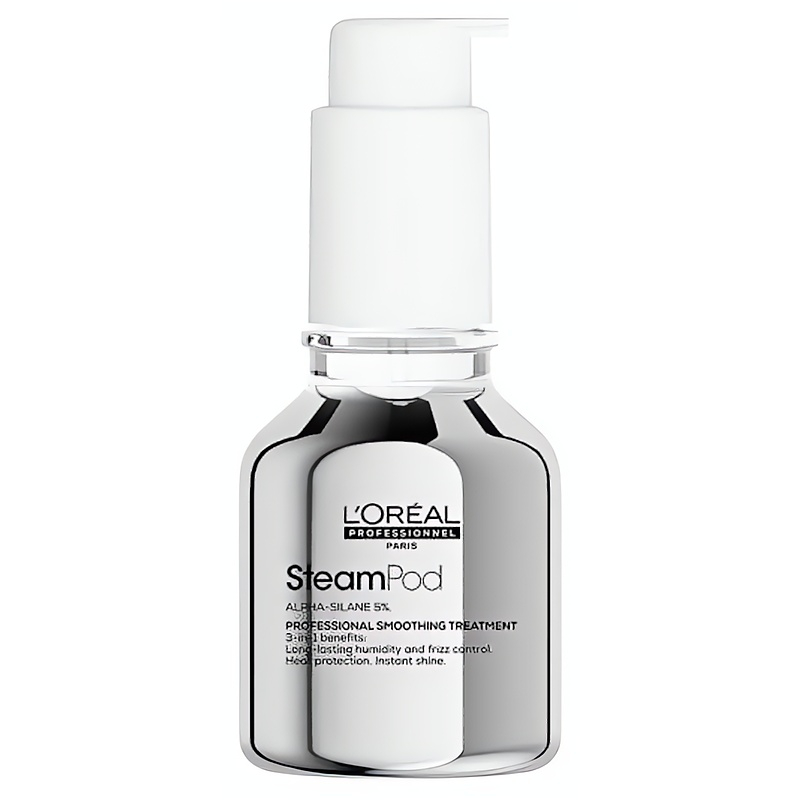 Profesionální uhlazující péče SteamPod od L'Oréal Professionnel představuje revoluční řešení pro ochranu a zjemnění vlasů. Tato koncentrovaná termoochraná péče, obohacená o Alpha-silane, vytváří na vlasech ochrannou vrstvu, která odolává vysokým teplotám až do 230 °C a vlhkosti až 80 %. Díky aktivaci účinků teplem a párou získáte okamžitě hebčí, lesklejší a vyživené vlasy, které zůstávají krásné i po 5 umytích. Ochrana proti krepatění trvá až 72 hodin, což zajišťuje dlouhotrvající účesy. Snadné rozčesávání a až 3x rychlejší styling přináší radost z každodenní péče o vlasy. Pro maximální efekt doporučujeme kombinaci s parní žehličkou SteamPod.