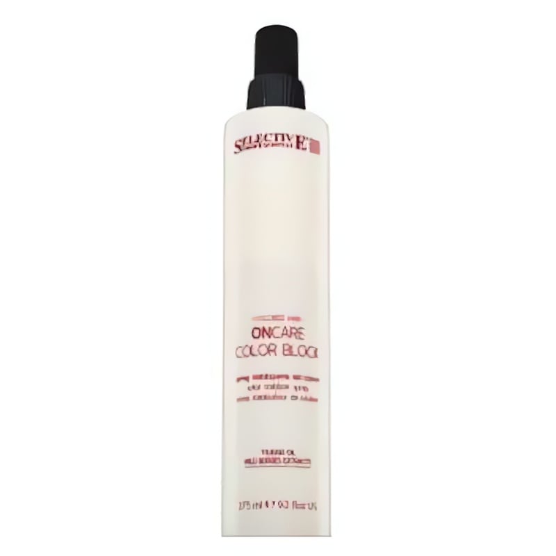 Selective Professional OnCare Color Block Color Stabilizer Spray je bezoplachový sprej určený pro barvené vlasy, který zajišťuje jejich dlouhotrvající krásu a intenzitu. Tento inovativní produkt chrání vlasy před vyblednutím a ztrátou lesku díky unikátnímu složení s UV filtry a antioxidanty. Posiluje strukturu vlasů a udržuje je hydratované a hebké, což přispívá k jejich zdravému vzhledu. Aplikace je jednoduchá – stačí sprej rovnoměrně nanést na vlhké nebo suché vlasy a neoplachovat. Ideální pro všechny typy barvených vlasů, které potřebují extra péči a ochranu před vnějšími vlivy.