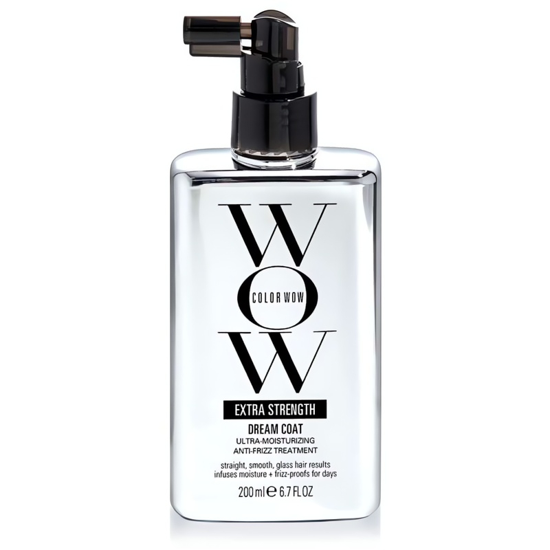 Sprej proti krepatění a pórovitosti Extra Strength Dream Coat od značky Color Wow je ideálním řešením pro kudrnaté a vlnité vlasy. Tento inovativní produkt využívá voděodolnou technologii, která narovnává vlasy a zajišťuje jejich hladkost. Obsahuje bohaté hydratační složky, které pronikají do křehkých pramenů a zafixují se po použití tepelného stylingu. Sprej také chrání vlasy před vysokými teplotami, čímž podporuje jejich zdraví a lesk. Výsledkem jsou uhlazené vlasy, které vydrží až 3-4 umytí. Pro maximální efekt aplikujte na vlhké vlasy a aktivujte fénem.