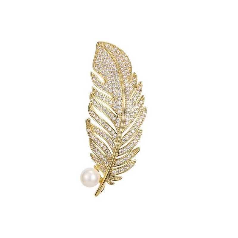 Brož pozlacené pírko se sladkovodní perličkou značky Troli je symbolem elegance a kvality. Vyrobená z obecného kovu s povrchovou úpravou zlatým PVD povlakem, což zajišťuje odolnost proti opotřebení a dlouhotrvající lesk. Krásné sladkovodní perličky a třpytivé čiré krystaly dotvářejí jedinečný design, který se hodí k různým stylům. Pro zachování krásy šperku je doporučeno vyhnout se kontaktu s vodou a chemikáliemi. Původní značka Troli se vyznačuje precizním zpracováním a důrazem na kvalitu, což potvrzuje i tento kousek, který oživí každou vaši outfit.