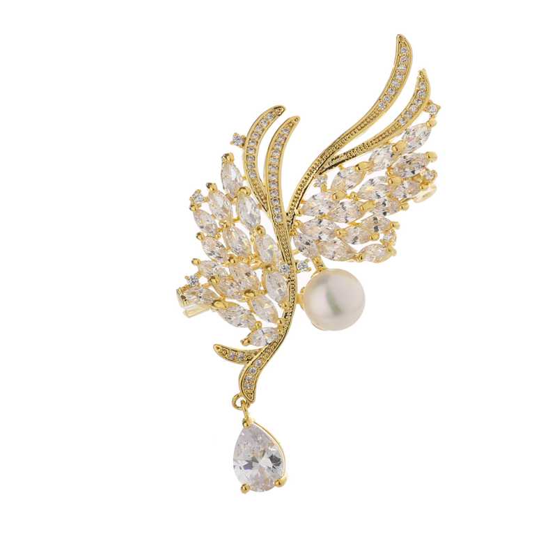 Luxusní pozlacená brož s krystaly a perlou od značky Troli vnáší do každého outfitu nádech elegance a jedinečnosti. Tvar připomínající křídlo, zdobený třpytivými krystaly a syntetickou perlou, vytváří harmonickou kombinaci, která osloví ženy s vkusem. Díky kvalitnímu PVD povrchu je brož nejen krásná, ale také odolná vůči opotřebení. Je ideální pro doplnění halenky, saka, kabelky či baret. S rozměry 3, 2 x 7 cm se stane výrazným prvkem vašeho stylu. Vybavte se šperkem, který symbolizuje svobodu a ženskost, a nechte se unést jeho kouzlem. Dodává se v originálním balení, takže je skvělým dárkem pro každou příležitost.