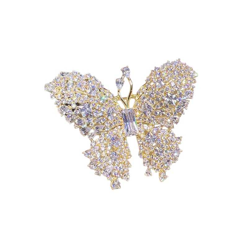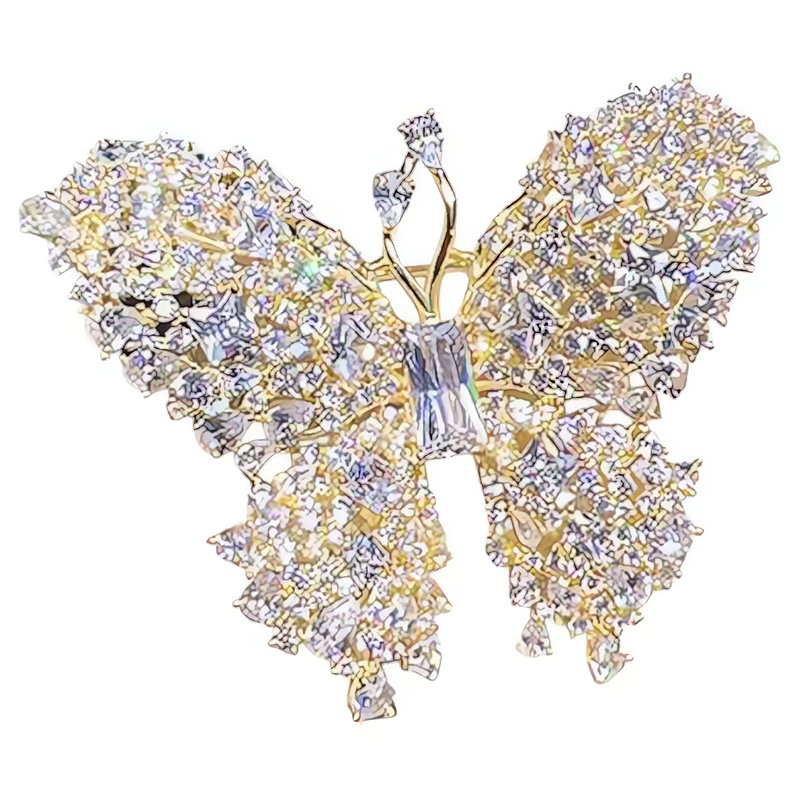 Brož ve tvaru motýla od značky Troli spojuje precizní řemeslné zpracování s elegantním designem. Vyrobena je z kvalitního obecného kovu a pokovena zlatým PVD povlakem, který zajišťuje dlouhotrvající lesk a odolnost proti poškrábání. Doplňující vybroušené čiré krystaly nádherně odrážejí světlo, čímž dodávají šperku jedinečný třpyt. Pro udržení jeho krásy doporučujeme vyhýbat se kontaktu s vodou a chemikáliemi, a skladovat brož v suchu. Troli je známá svou vysokou kvalitou a precizním zpracováním, což potvrzuje i tento elegantní kousek.