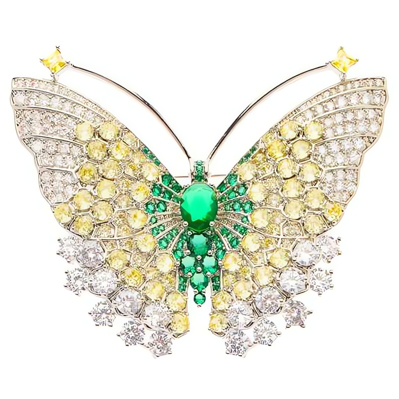 Elegantní brož ve tvaru motýla Monarch přináší do vašeho šperkového arzenálu výjimečný kousek, který zaujme na první pohled. Vyrobena z kvalitní mosazi s rhodiovaným povrchem, zajišťuje nejen dlouhotrvající lesk, ale také minimalizuje riziko alergických reakcí. Precizně broušené krystaly v odstínech zelené, čiré a žluté vytvářejí harmonickou kombinaci barev, která rozzáří každý outfit. S rozměry 5 x 6, 1 cm je brož ideálním módním doplňkem pro ženy, které chtějí podtrhnout svou osobnost a styl. Dodává se v originálním balení, což z ní činí skvělý dárek pro každou příležitost. Nechte se okouzlit tímto jedinečným šperkem.
