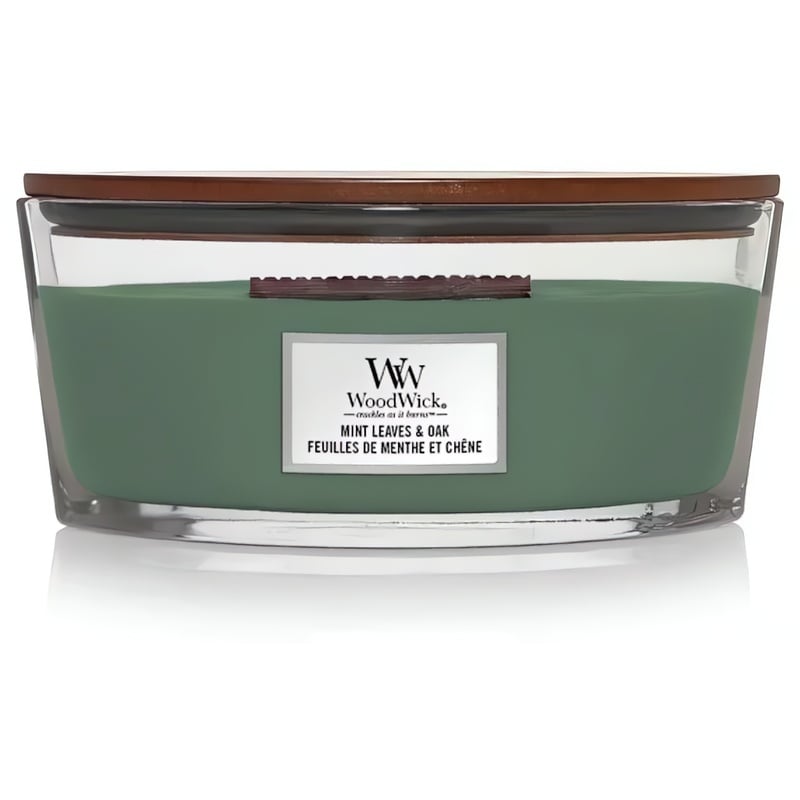 Vonná svíčka Mint Leaves & Oak přináší do vašeho domova osvěžující vůni čerstvé máty, která harmonicky doplňuje dřevité tóny zeleného mechu a ohořelého dubu. Tento jedinečný zážitek umocňuje patentovaný knot HEARTHWICK® FLAME, který vytváří příjemný zvuk praskání a dlouhý tančící plamen, připomínající atmosféru u krbu. Svíčka hoří až 50 hodin a díky směsi prémiového parafínu a sójového vosku zajišťuje čisté hoření bez zbytků. Otevřený tvar svíčky zvyšuje intenzitu vonných esencí, které naplní místnost dlouhotrvající vůní. Dopřejte si chvíle pohody s touto elegantní bytovou vůní.