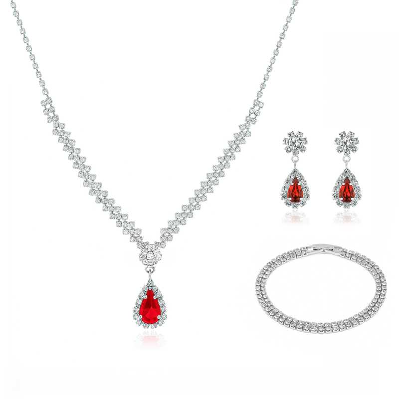 Elegantní dámská sada šperků Kapka od značky Troli spojuje jemnost a výjimečnost. Sada zahrnuje náhrdelník, náramek a visací náušnice, které jsou zhotoveny z kvalitního obecného kovu a zdobeny čirými zirkony. Hlavním akcentem je precizně broušený červený zirkon ve tvaru kapky, symbolizující vášeň a eleganci. Délka náhrdelníku je 35 cm s možností prodloužení, což zajišťuje perfektní padnutí. Ideální pro svatby, plesy či jiné výjimečné okamžiky, tato souprava podtrhne krásu každé ženy a stane se nezapomenutelným dárkem pro vaše blízké. Obohaťte svůj šperkovník o tento nadčasový kousek.