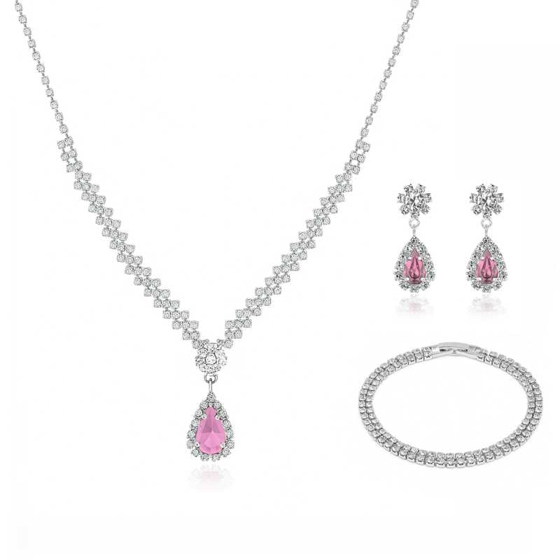 Dámská sada šperků Kapka od značky Troli spojuje eleganci a jemnost v jedinečném designu. Sada obsahuje náhrdelník, náramek a visací náušnice, všechny zdobené čirými zirkony, které se třpytí na světle. Hlavní ozdobou je precizně vybroušený růžový zirkon ve tvaru kapky, symbolizující lásku a krásu. Náhrdelník s možností prodloužení až o 14 cm a náušnice o rozměrech 1 x 2 cm perfektně doplní jakýkoliv večerní outfit a jsou ideální na různé výjimečné události. Kvalita značky Troli zaručuje trvanlivost a styl, což činí tento set skvělým dárkem pro sebe nebo své blízké.