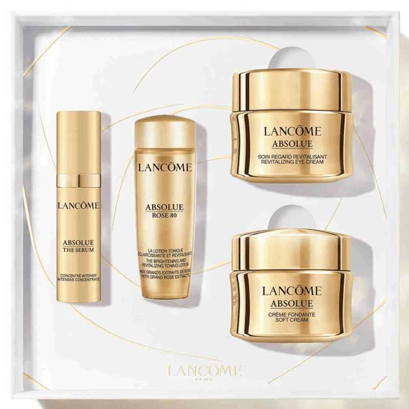 Dárková sada Absolue Eye Set od značky Lancôme je ideálním řešením pro péči o pleť s prvky luxusu. Obsahuje revitalizační oční krém, jemný regenerační krém s extraktem z růže, tonizující pleťové mléko a omlazující pleťové sérum. Oční krém účinně vypíná pleť a rozjasňuje oční okolí, zatímco regenerační krém navrací pleti pevnost a vyhlazuje jemné vrásky. Tonizující mléko zklidňuje a hydratuje, připravuje pleť na další péči. Omlazující sérum urychluje obnovu buněk a bojuje proti známkám stárnutí. Tato sada je perfektní volbou pro ženy, které chtějí dosáhnout mladistvého vzhledu a zdravé pleti.