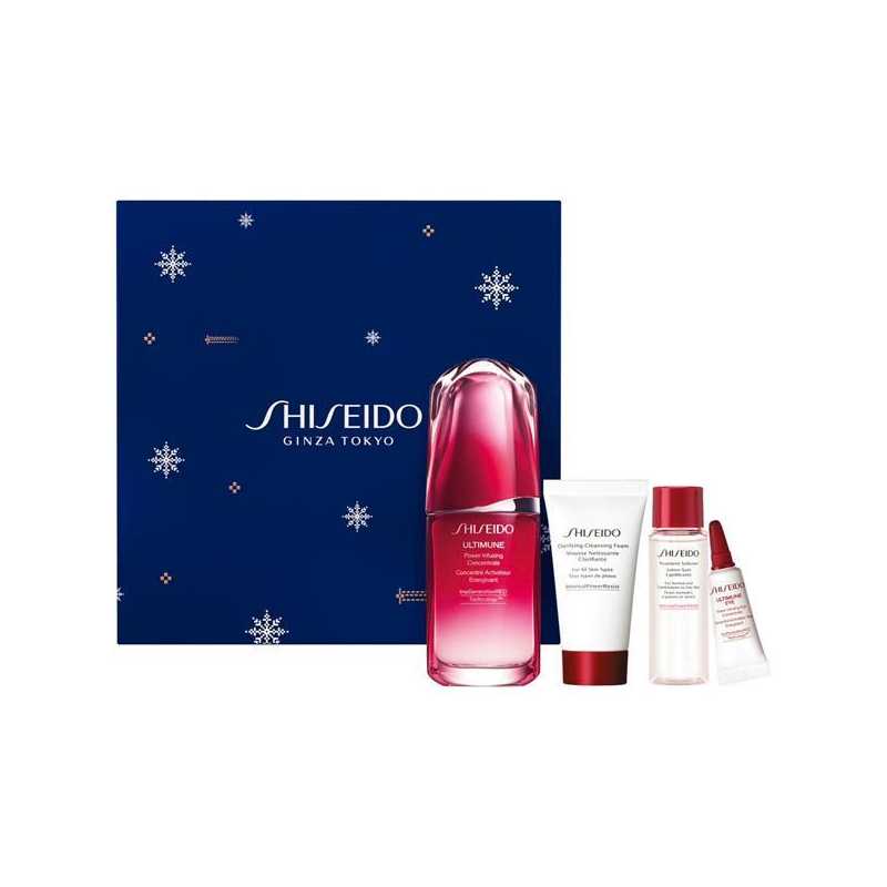 Dárková sada Ultimune Set od Shiseido představuje dokonalou kombinaci pro komplexní péči o pleť. Obsahuje pleťové sérum Ultimune, které zpevňuje a omlazuje pleť, čímž efektivně bojuje proti jemným vráskám a dodává pleti zdravý vzhled. Aktivní čisticí pěna hloubkově čistí póry a odstraňuje nečistoty, přičemž pleť zanechává vyváženě hydratovanou. Hydratační pleťová voda vyrovnává pH pleti a chrání ji před vnějšími vlivy, zatímco oční koncentrát Ultimune Eye okamžitě redukuje tmavé kruhy a zpevňuje pleť kolem očí. Tato sada je ideální volbou pro všechny, kteří touží po mladistvém a svěžím vzhledu pleti.