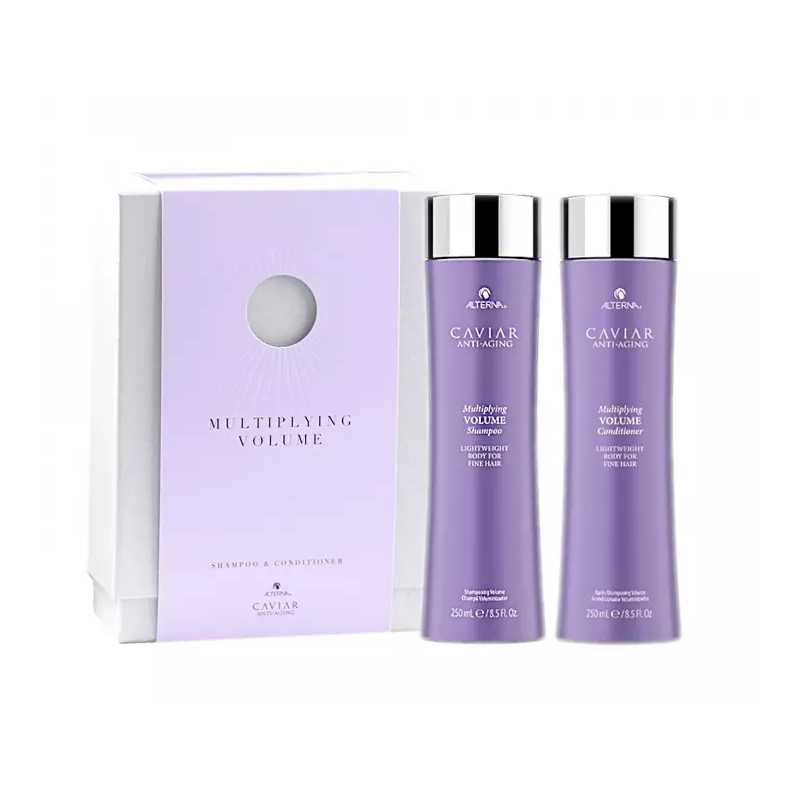 Dárková sada Caviar Multiplying Volume Set je ideálním řešením pro jemné vlasy, které potřebují objem a péči. Obsahuje šampon a kondicionér Caviar Anti-Aging, které šetrně myjí a regenerují vlasy, aniž by je zatěžovaly. Šampon s Marine Plumping Complexem obnovuje přirozenou hustotu a zabraňuje lámání, zatímco kaviárový extrakt dodává lesk a vyhlazuje vlasové vlákno. Kondicionér usnadňuje rozčesávání a poskytuje beztížnou hydrataci, čímž vlasy oživuje a chrání před stárnutím. Oba produkty jsou ideální pro každodenní použití a přinášejí vlasům zdravý vzhled a vitalitu.