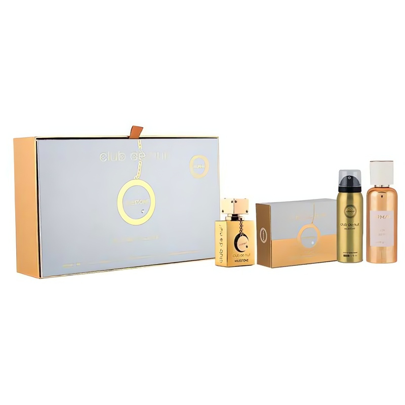 Dárkový set Club De Nuit Milestone přináší jedinečný zážitek pro všechny milovníky vůní. Tato květinově-ovocná kompozice spojuje svěží tóny mořské soli s citrusovými akordy mandarinky a sicilského citronu, které osvěží vaše smysly. Srdce vůně obohacuje bergamot a kosatec, zatímco základní tóny mořských nuancí a pižma dodávají hloubku a eleganci. Set obsahuje parfémovanou vodu, tuhé mýdlo, tělový a vlasový sprej, což z něj činí ideální volbu pro každou příležitost. Vytvořte si vlastní rituál péče a osvěžení s tímto harmonickým dárkovým setem.