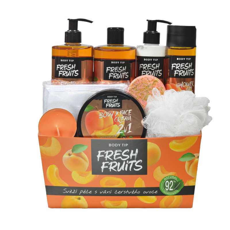 Dárkové balení Fresh Fruits Meruňka přináší jedinečný zážitek péče o pleť s bohatým obsahem meruňkového oleje. Toto elegantní balení obsahuje vše potřebné pro dokonalou relaxaci a hydrataci pokožky. Tekuté mýdlo, sprchový gel a tělové mléko se snadno vstřebávají a zanechávají pleť jemnou a vláčnou. Pěna do koupele a aromatická přísada přispívají k harmonizaci těla i mysli, zatímco zvláčňující krém s vitamínem E chrání pleť před vnějšími vlivy. Ideální pro ženy, které hledají kvalitní kosmetiku s přírodními ingrediencemi. Dopřejte si nebo svým blízkým chvíle pohody a osvěžení s vůní sladké meruňky.