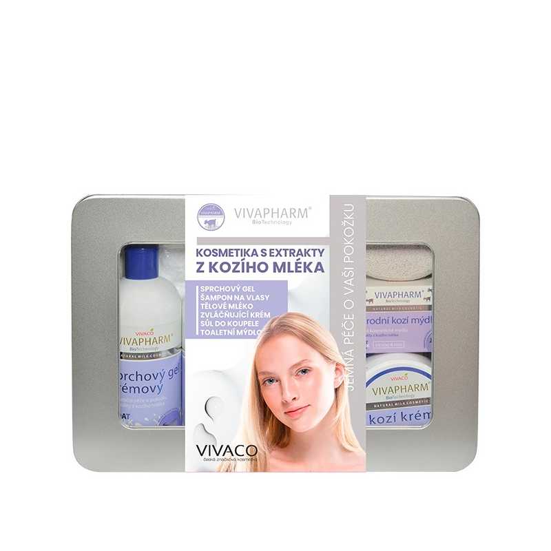 Objevte kouzlo přírodní péče s dárkovým balením kosmetiky s kozím mlékem od značky Vivaco. Toto luxusní plechové balení obsahuje sprchový gel, šampon, tělové mléko, zvláčňující krém, tuhé mýdlo a sůl do koupele, které společně vyživují a regenerují pokožku celého těla i obličeje. Kozí mléko je bohaté na minerály, vitamíny a kyselinu listovou, což přispívá k hydrataci a zjemnění pleti. Produkty jsou vhodné pro všechny typy pleti, včetně citlivé a problematické, a nezanechávají pocit mastnoty. Dopřejte si přírodní péči, která vaši pokožku hýčká a chrání.