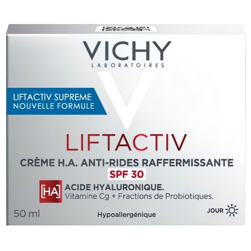Denní liftingový a zpevňující krém Liftactiv Supreme je ideálním společníkem pro každodenní péči o pleť. Díky obsahu kyseliny hyaluronové poskytuje hloubkovou hydrataci, zatímco termální voda Vichy posiluje přirozenou obranyschopnost pleti. Tento krém účinně redukuje viditelnost vrásek a vyhlazuje již existující jemné linky. Jeho nemastná textura se snadno vstřebává a zanechává pleť svěží a zpevněnou. Ochrana SPF 30 chrání pleť před škodlivými UV paprsky a vnějšími vlivy, které mohou způsobit předčasné stárnutí. Pro optimální výsledky aplikujte ráno na čistou pleť.