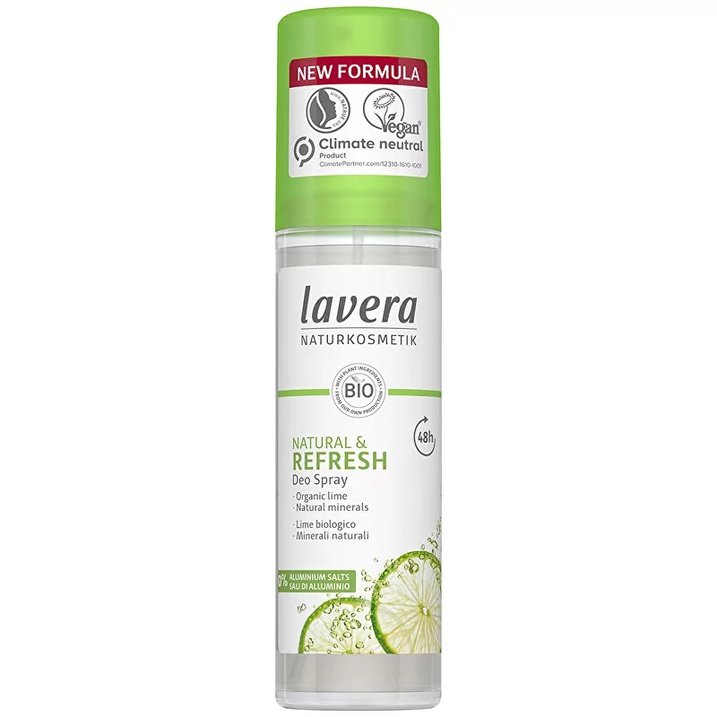 Osvěžující deodorant ve spreji s vůní limetky Refresh od značky LAVERA přináší dlouhotrvající svěžest až na 24 hodin. Jeho šetrné složení bez hliníkových solí je ideální pro citlivou pokožku podpaží. Přírodní minerály účinně redukují pocení a nežádoucí zápach, zatímco výtažky z bio limetky a bio verbeny stimulují obnovu buněk a dodávají energii. Deodorant je 100% organický a jeho receptura neznečišťuje odpadní vody. Plastové víčko je vyrobeno z 96 % z recyklovaného materiálu, což podtrhuje ekologický přístup produktu. Aplikujte ze vzdálenosti 15 cm a užijte si osvěžující citrusovou vůni po celý den.