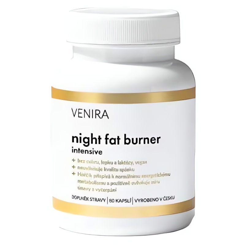 Noční spalovač tuků od značky Venira je ideálním doplňkem pro všechny, kteří chtějí efektivně podpořit redukci tělesného tuku a zlepšit metabolismus i během spánku. Tento produkt obsahuje esenciální kyselinu linolovou, L-karnitin a L-tryptofan, které napomáhají spalování tuků, zvyšují energetický metabolismus a podporují kvalitní spánek. Hořčík v přípravku přispívá k udržení normální funkce nervového systému a snižuje únavu. Bez obsahu kofeinu a stimulantů je vhodný pro každého, kdo hledá zdravou cestu k dosažení svých cílů. Užívejte 2 kapsle denně a podpořte tak své zdraví a pohodu.