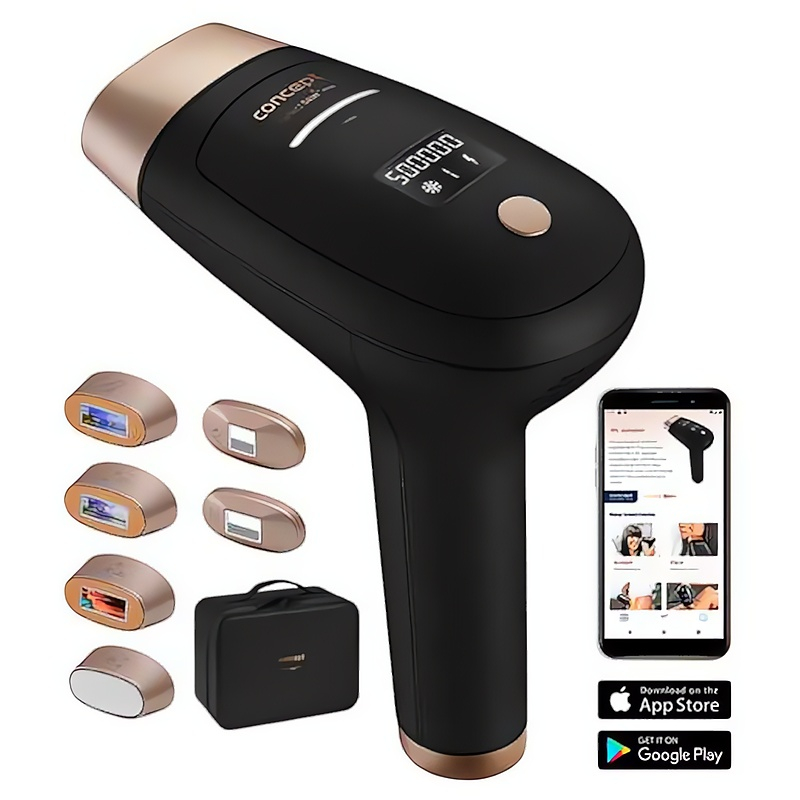 IPL epilátor Concept IL5020 Perfect Skin PRO je ideálním řešením pro dlouhodobé odstranění chloupků a zpevnění pleti v pohodlí domova. Díky technologii intenzivního pulzního světla a životnosti až 1,5 milionu záblesků se můžete těšit na hladkou pokožku bez nutnosti častého ošetření. Tento přístroj nabízí 5 úrovní intenzity a 2 provozní režimy, což zajišťuje přizpůsobení každému typu pleti. S šesti různými nástavci, včetně těch pro omlazení pleti a odstranění akné, splní všechny vaše potřeby. Bezpečnostní senzor chrání oči a praktický kufřík usnadňuje skladování. Užívejte si krásnou pleť s tímto multifunkčním epilátorem.