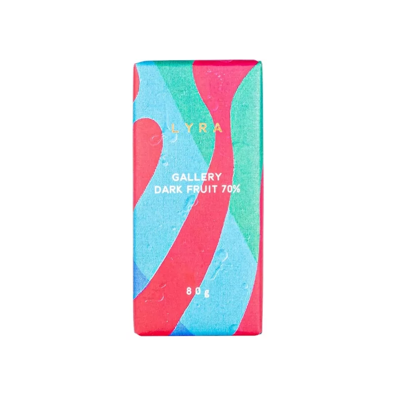 Čokoláda Gallery Dark Fruit 70% LYRA je vyráběna z nejkvalitnějších kakaových bobů criollo a trinitario z Jižní Ameriky. Obsahuje pouze přírodní ingredience jako kakaové máslo, lískové oříšky z Piemontu a rozinky. Každý kousek je uměleckým dílem, které nejen potěší chuťové buňky, ale také poskytne tělu důležité živiny. Díky unikátnímu QR kódu na obalu se dozvíte kompletní informace o původu kakaových bobů a výrobním procesu. LYRA je značka, která spojuje kvalitu s přírodou a pestrostí, a s její čokoládou se stáváte součástí čokoládové revoluce. Užijte si zdravou lahůdku, která je nejen lahodná, ale i prospěšná pro Vaše zdraví a krásu.