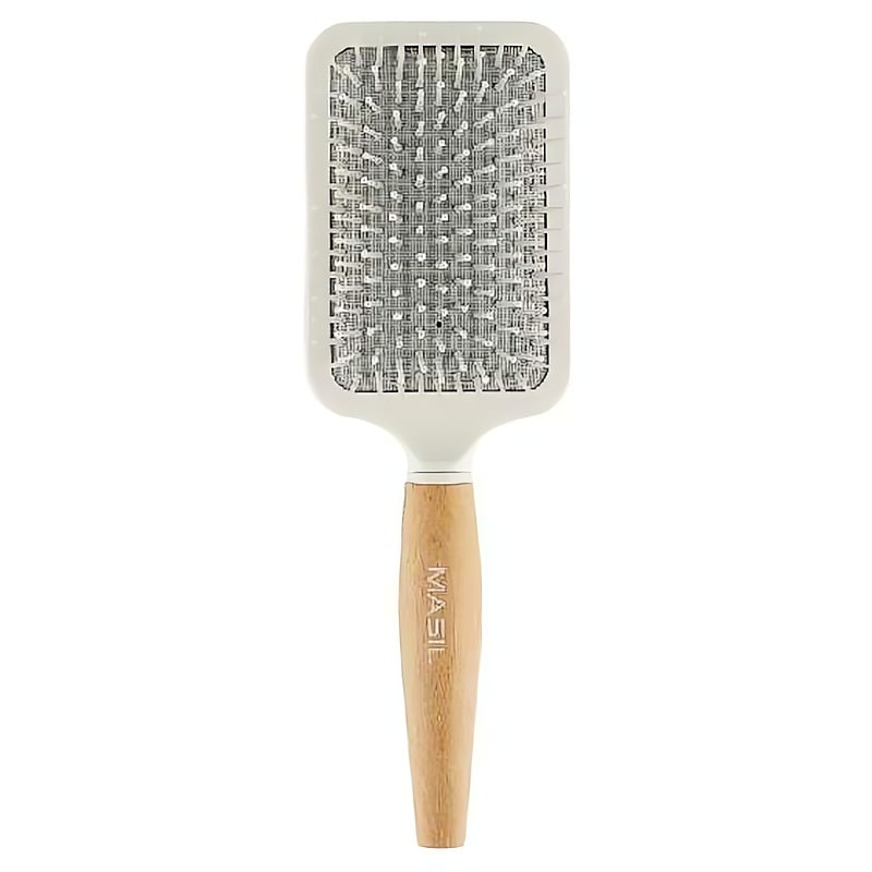 Dřevěný kartáč na vlasy od značky Masil je ideálním pomocníkem pro každodenní péči o vlasy. Jeho široká konstrukce umožňuje snadné a šetrné rozčesávání, které minimalizuje tahání a zacuchání. Měkké nylonové štětiny jemně procházejí vlasy, zatímco antistatický účinek zabraňuje nežádoucímu elektrizování. Rukojeť z jilmového dřeva nejen skvěle padne do ruky, ale také přispívá k příjemnému pocitu při používání. Tento kartáč navíc poskytuje relaxační masáž hlavy, což zlepšuje prokrvení pokožky a podporuje zdravý růst vlasů. Dopřejte svým vlasům tu nejlepší péči s dřevěným kartáčem Masil.