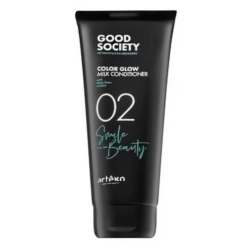 Artègo Good Society 02 Color Glow Milk Conditioner je vyživující kondicionér určený pro barvené vlasy, které potřebují ochranu a lesk. Díky své jedinečné mléčné textuře se snadno aplikuje a zanechává vlasy hedvábně jemné. Obsahuje aktivní látky jako Panthenol, který hydratuje a zklidňuje vlasy, UV filtry chránící barvu před vyblednutím, a olej z avokáda, jenž dodává intenzivní lesk. Tento kondicionér nejenže udržuje intenzitu barvy, ale také zabraňuje vysušování vlasů. Ideální pro každodenní použití po mytí, přináší vlasům zdravý vzhled a vitalitu. Pro dosažení nejlepších výsledků se doporučuje pravidelně používat.