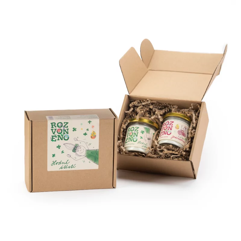 Vývoj produktu Rozvoněno Dárkový balíček Hodně štěstí začal s mladými manželi žijícími v Brně, kteří se nadchli pro výrobu produktů v souladu s přírodou. Jejich filozofie spočívá v udržitelnosti a ekologičnosti, což vedlo k založení značky Rozvoněno. Svíčky jsou ručně vyráběny na jihu Moravy ze 100% přírodních vosků obohacených éterickými oleji a květy levandule z vlastního políčka. Každá svíčka je originál a vydrží hořet až 25 hodin. Díky upcyklaci používají použité sklenky a minimalizují množství odpadu. Svíčky neobsahují žádné škodlivé látky a jsou biologicky odbouratelné. S Rozvoněno podporujete udržitelný životní styl a přírodní produkty.