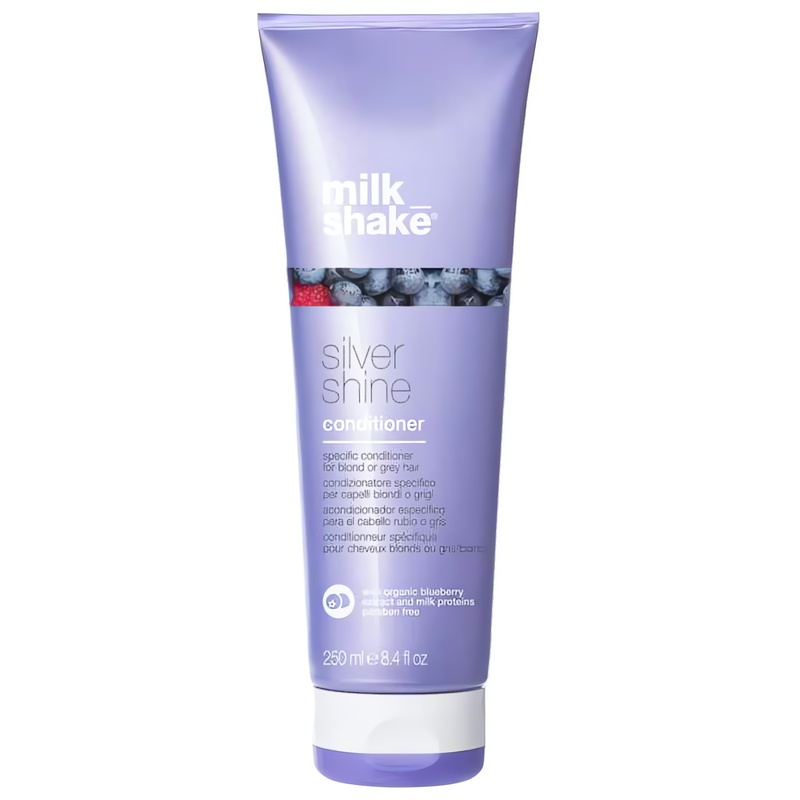 Kondicionér Silver Shine od značky MILK SHAKE je ideálním řešením pro blond a šedé vlasy, které potřebují speciální péči. Díky unikátnímu pigmentu efektivně neutralizuje nežádoucí žluté a mosazné tóny, čímž dodává vlasům chladný a přirozený odstín. Obsahuje mléčné proteiny, které vyživují a posilují vlasy, a organické ovocné extrakty pro optimální hydrataci. Aktivní komplex Integrity 41® chrání barvu a prodlužuje její životnost. Použití je snadné: stačí nanést na umyté vlasy, nechat působit a důkladně opláchnout. Vytvořte si zdravé a zářivé vlasy, které budou okouzlovat.