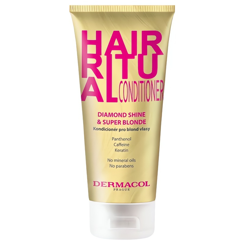 Kondicionér pro blond vlasy Hair Ritual od značky Dermacol je ideálním společníkem pro všechny odstíny blond. Obsahuje keratin a pšeničné proteiny, které zajišťují hebkost a zářivý lesk. Makadamiový olej a bambucké máslo vyživují a regenerují vlasy, čímž zvyšují jejich odolnost. Kofein a vitamín B3 aktivují vlasové kořínky, podporují mikrocirkulaci a zabraňují vypadávání vlasů. Tento kondicionér usnadňuje rozčesávání a chrání intenzitu barvy, aniž by obsahoval minerální oleje a parabeny. Pro dosažení nejlepších výsledků aplikujte na umyté vlasy, nechte působit 2-3 minuty a poté opláchněte. Vhodný pro všechny typy blond vlasů.
