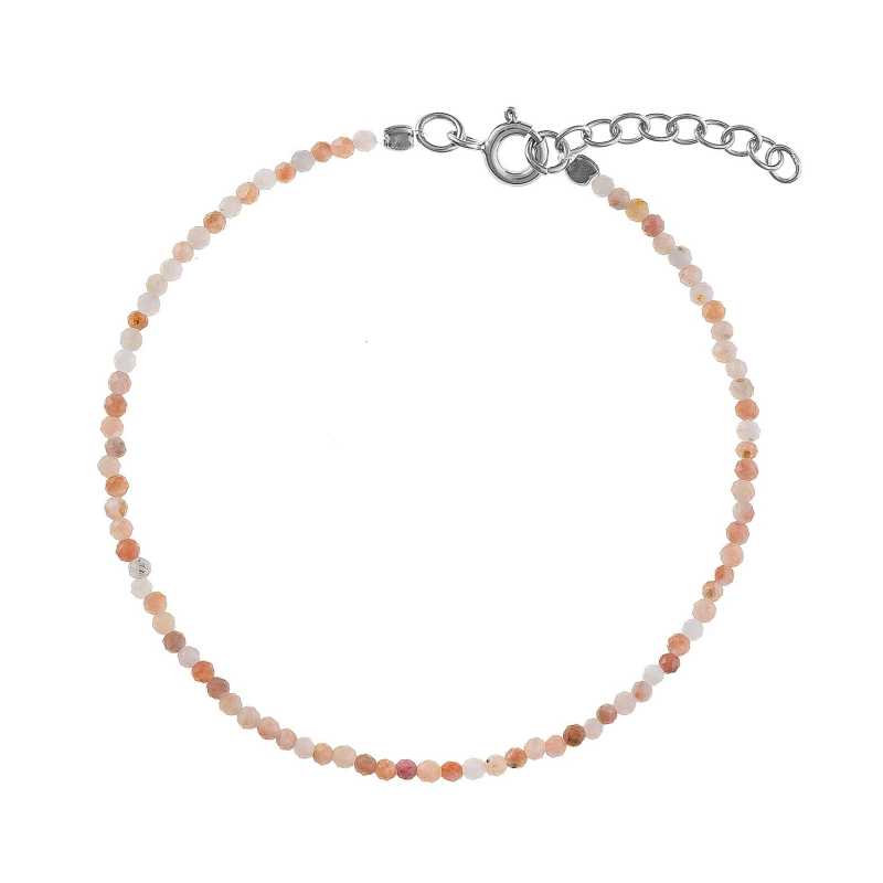 Korálkový náramek z oranžového měsíčního kamene AJKNR002 spojuje eleganci a hlubokou symboliku. Jeho design se skládá z jemných bílo-oranžových korálků vyrobených z měsíčního kamene, který je umně doplněn kvalitním stříbrem s rhodiovaným povrchem. Délka náramku činí 17 cm, s možností prodloužení o 3 cm, což zajišťuje pohodlné nošení. Měsíční kámen je známý svou schopností posilovat intuici a zklidňovat emoce, přičemž přitahuje lásku a harmonii. Tento šperk nejen ozvláštní Váš outfit, ale také přinese do Vašeho života vyrovnanost a klid. Značka AGAIN JEWELRY zaručuje vysokou kvalitu a pečlivé zpracování.