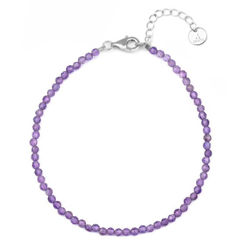Minerální náramek s ametystem od značky Agato je synonymem kvality a elegance. Složený z fialových korálků ametystu a komponentů ze stříbra 925/1000, zaručuje trvanlivost a krásu. Povrchová úprava rhodiováním chrání šperk před oxidací a dodává mu oslnivý lesk. Aby náramek dlouho vynikal, doporučuje se chránit ho před vodou a agresivními chemikáliemi a pravidelně otírat jemným hadříkem. Ametyst, známý pro své harmonizační vlastnosti, podporuje klid a duchovní růst. Investice do tohoto šperku znamená investici do kvality a nadčasového designu.