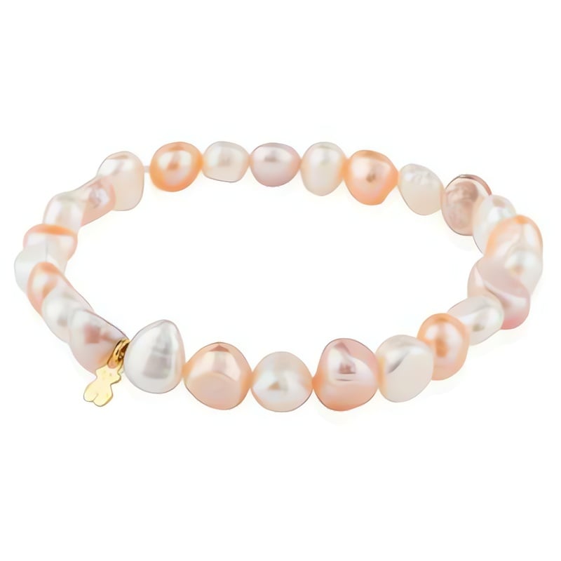 Náramek z pravých perel s pozlaceným medvídkem značky TOUS spojuje elegantní design a prvotřídní kvalitu. Vyroben z kultivovaných sladkovodních perel a stříbra 925/1000, nabízí jedinečné spojení přírodních materiálů a precizního zpracování. Povrchová úprava v lesklém provedení a tenká vrstva 18k zlata na medvídkovi zajišťují dlouhotrvající krásu a odolnost. Pro zachování jeho půvabu je doporučeno vyhýbat se přímému kontaktu s vodou a kosmetikou. Tento šperk, dodávaný v originálním balení, je dokonalým doplňkem pro každou příležitost, vyzařující kvalitu a styl.
