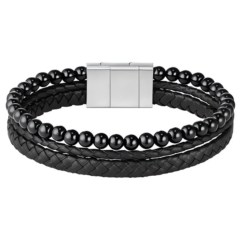 Trojitý černý náramek pro muže Sphere od značky Hugo Boss představuje spojení elegance a kvality. Tento stylový šperk je vyroben z prvotřídní černé kůže a korálků tygřího oka, což zaručuje jeho odolnost a dlouhou životnost. Kůže dodává náramku sofistikovaný vzhled, zatímco tygří oko přináší unikátní estetiku a energii. Povrchová úprava v matném provedení podtrhuje jeho moderní design. Pro zajištění krásy náramku doporučujeme pravidelně otírat jemným hadříkem a vyhýbat se kontaktu s vodou a parfémy. Tento šperk je dodáván v originálním balení, což z něj činí ideální dárek. Kvalita materiálu a precizní zpracování značky Hugo Boss zaručují, že náramek bude skvělým módním doplňkem pro každého muže.