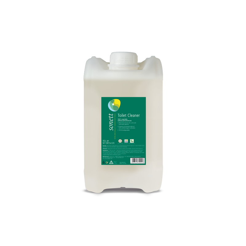 Sonett WC čistič cedr a citronela je ideálním řešením pro efektivní a šetrné čištění toalety. Díky 100% přírodnímu složení s bio éterickými oleji z cedru a citronely účinně odstraňuje močové a vápenaté usazeniny, zatímco příjemná vůně osvěžuje prostor. Tento čistič se skvěle přilne ke stěnám toalety, což zajišťuje dlouhotrvající účinek. S pH hodnotou 5-6 je šetrný k povrchům a zároveň účinný proti bakteriím. V balení o objemu 10 l získáte dostatek prostředku pro dlouhodobé používání. Vhodný pro vegany a certifikovaný přírodní produkt z Německa.
