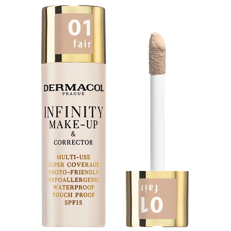 Vysoce krycí make-up a korektor Infinity představuje ideální řešení pro dokonalou pleť. Tento multifunkční produkt sjednocuje barevný tón pleti, efektivně kryje nedokonalosti a pigmentové skvrny, čímž zajišťuje sametově hebký a matný vzhled. Obsahuje vitamín E, který pečuje o pleť a chrání ji před volnými radikály. Díky SPF 15 poskytuje ochranu před slunečním zářením. Voděodolná a dotekuodolná formule zaručuje dlouhotrvající efekt, což oceníte během celého dne. Hypoalergenní složení je vhodné pro všechny typy pleti. Aplikujte pomocí praktického aplikátoru a užijte si bezchybné líčení.