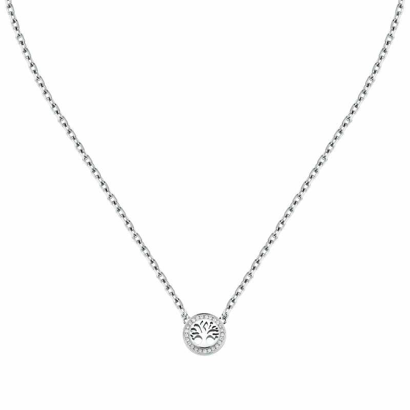 Dámský ocelový náhrdelník Strom života od italské značky Morellato je dokonalým spojením elegance a symboliky. Tento šperk, vyrobený z kvalitní oceli, nese na svém designu motiv stromu života, který symbolizuje růst, sílu a propojení s přírodou. Čiré krystaly, které šperk zdobí, se jemně třpytí a přidávají mu na výraznosti. Délka náhrdelníku činí 40 cm s možností prodloužení o 5 cm, což zaručuje pohodlné nošení. Klasické zapínání na karabinku zajistí bezpečnost. V originálním balení se jedná o ideální dárek pro každou ženu, která ocení kvalitní a stylové šperky.