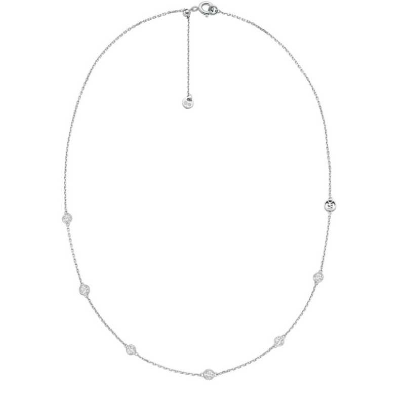 Elegantní stříbrný náhrdelník se zirkony Brilliance od značky Michael Kors spojuje kvalitu a styl. Je vyroben z prvotřídního stříbra 925/1000, jehož rhodiová úprava zajišťuje dlouhotrvající lesk a snižuje riziko alergických reakcí. Dekoraci tvoří blyštivé kubické zirkony, které dodávají šperku nádech luxusu a elegance. Pro zachování krásy doporučujeme šperk uchovávat v originálním balení a vyvarovat se kontaktu s vodou či agresivními chemikáliemi. Tento náhrdelník je ideálním doplňkem pro každou příležitost, který skvěle podtrhuje váš dekolt. Vybíráte-li kvalitu a styl, Michael Kors je tím správným rozhodnutím.