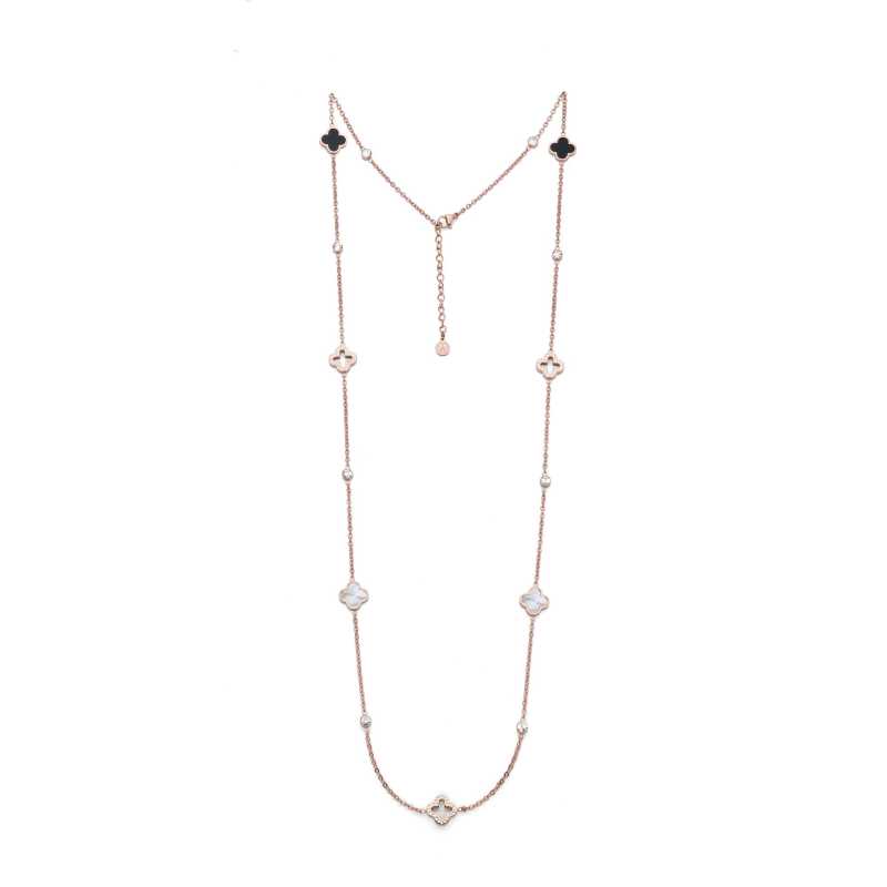 Luxusní dlouhý náhrdelník Delight Freedom od značky Oliver Weber je dokonalým doplňkem pro každou ženu, která touží po eleganci a šarmu. Vyrobený z kvalitní oceli a pozlacený růžovým zlatem, tento šperk vyniká nejen svou délkou 82 cm, ale také jedinečným designem ozdob připomínajících čtyřlístky pro štěstí. Kombinace perleti, černého smaltu a třpytivých kubických zirkonů dodává náhrdelníku výjimečný lesk a sofistikovanost. S možností prodloužení o 5 cm se skvěle přizpůsobí vašemu dekoltu. Tento šperk se dodává v originálním balení, ideálním pro darování nebo jako osobní investice do krásy.
