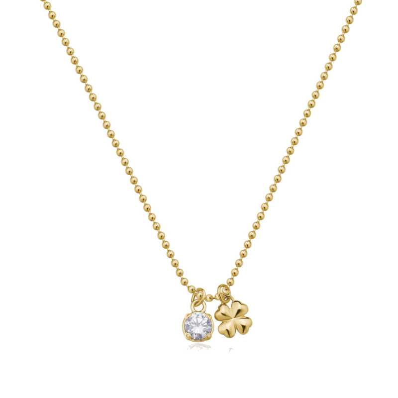 Pozlacený náhrdelník Desideri od značky Brosway představuje elegantní spojení stylu a symboliky. Je vyroben z kvalitní oceli a pokrytý žlutým zlatem, což mu dodává luxusní vzhled. Přívěsek ve tvaru čtyřlístku, známého symbolem štěstí, je osazen třpytivým zirkonem, který uchvátí na první pohled. Délka náhrdelníku 43 cm zajišťuje pohodlné nošení, přičemž praktické zapínání na karabinku usnadňuje jeho nasazení. Tento šperk se stává dokonalým módním doplňkem, který oživí každý outfit a přinese do vašeho života kousek štěstí. Dodává se v originálním balení, ideální jako dárek pro ženy, které si potrpí na styl a kvalitu.