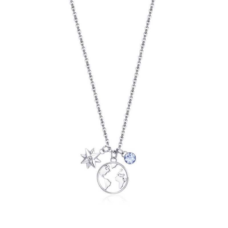 Originální ocelový náhrdelník značky Brosway je ideálním doplňkem pro všechny ženy, které milují cestování a kladou důraz na styl. Délka 44 cm zaručuje pohodlné nošení, zatímco elegantní přívěsek s designem planety Země, doplněný o jemnou hvězdičku a precizně broušený krystal, přitahuje pozornost a dodává šperku jedinečný charakter. Vyroben z kvalitní oceli, náhrdelník nejenže skvěle vypadá, ale také zajišťuje dlouhou životnost a odolnost. Dodává se v originálním balení, což z něj činí skvělý dárek. Vynikněte s tímto šperkem, který spojuje krásu a symboliku cestování.