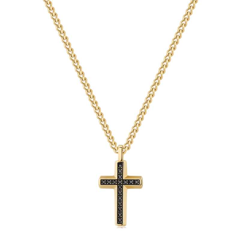 Pozlacený náhrdelník s křížkem Backliner BBC02 od značky Brosway přináší do vašeho šperkovníku nádech elegance a stylu. Vyrobený z kvalitní oceli a pozlacený žlutým zlatem, tento náhrdelník se stává dokonalým doplňkem pro každodenní nošení i zvláštní příležitosti. Přívěsek ve tvaru křížku, zdobený černým smaltem a zářivými černými zirkony, se při každém pohybu nádherně třpytí. Délka 70 cm zajišťuje, že šperk bude na hrudníku nepřehlédnutelný. Ideální pro muže, kteří chtějí podtrhnout svůj osobní styl a vyjádřit svou individualitu. Tento moderní šperk se snadno kombinuje s různými outfity a dodává jim šmrnc. Dodáván v originálním balení, je skvělým dárkem pro každého muže.