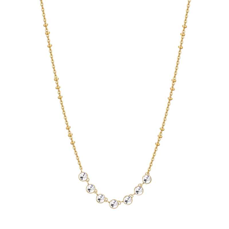 Půvabný pozlacený náhrdelník s čirými krystaly značky Brosway je dokonalým doplňkem pro každou ženu, která si potrpí na eleganci a styl. Vyrobený z kvalitní oceli a pozlacený žlutým zlatem, tento šperk vyniká svým luxusním vzhledem. Délka 45 cm zajišťuje ideální umístění na dekoltu, zatímco čiré krystaly se při každém pohybu oslnivě třpytí, dodávajíce šperku jedinečný nádech. Drobné korálky na řetízku umocňují celkový design a činí náhrdelník ještě atraktivnějším. Tento šperk je dodáván v originálním balení, což z něj činí skvělý dárek pro speciální příležitosti. Vynikněte s náhrdelníkem, který podtrhne vaši osobnost a jedinečnost.
