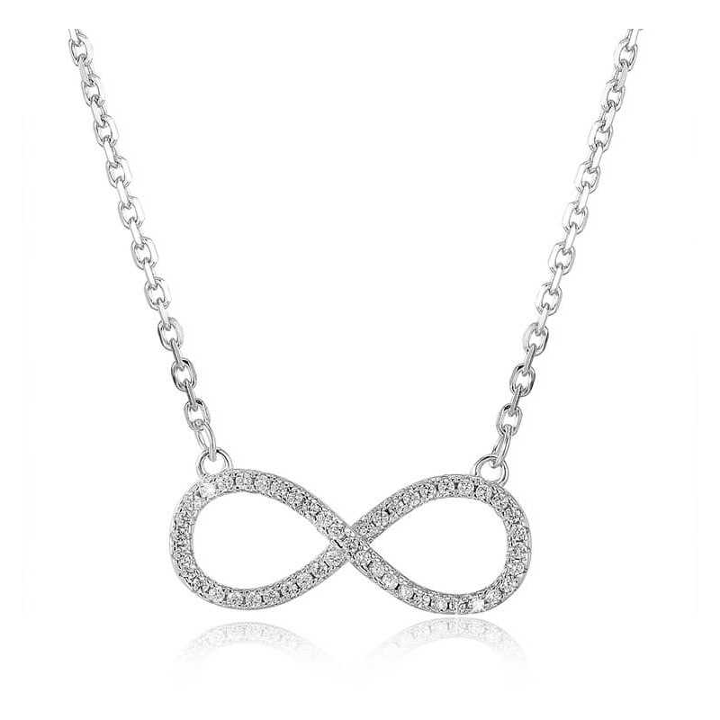 Stříbrný náhrdelník s motivem nekonečna od značky Beneto je elegantním doplňkem pro každou ženu. Je vyroben ze stříbra 925/1000 s rhodiovaným povrchem, což zajišťuje nejen trvalý lesk, ale i ochranu proti alergickým reakcím. Přívěsek ve tvaru nekonečna je osazen čirými krystaly, které dodávají šperku nádech luxusu. Délka náhrdelníku činí 42 cm, s možností prodloužení o 6 cm, což umožňuje dokonalé přizpůsobení každému typu dekoltu. Tento nadčasový šperk je ideální volbou pro každodenní nošení i speciální příležitosti. Pro jeho elegantní vzhled a kvalitní zpracování se stane oblíbeným doplňkem vaší šperkovnice.