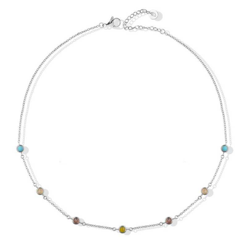Vícebarevný ocelový náhrdelník LJ2863 od italské značky Liu Jo je elegantním doplňkem, který osvěží každý outfit. Je vyroben z kvalitní oceli a bohatě zdobený syntetickými kameny, které vyzařují živé barvy a dodávají šperku nezaměnitelný charakter. Délka náhrdelníku činí 45 cm s možností prodloužení o 5 cm, což zaručuje dokonalé přizpůsobení vašemu dekoltu. Klasické zapínání na karabinku zajišťuje bezpečné nošení. Tento šperk přináší nejen styl, ale i kvalitu, a jeho lesklý povrch podtrhuje jedinečnou krásu. Dodáván je v originálním balení, ideální jako dárek pro výjimečné příležitosti.